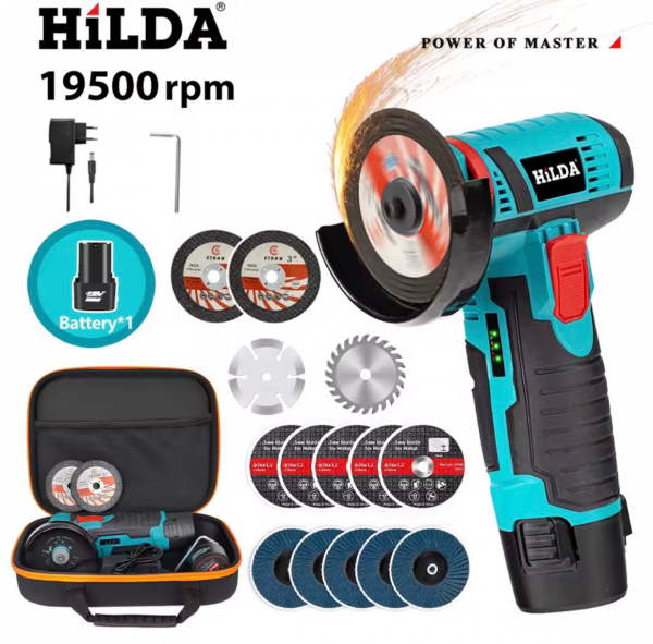 משחזת זווית אלחוטית 12V מבית HILDA לעבודות חיתוך וליטוש