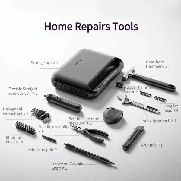 סט כלי עבודה איכותי ומעוצב מבית Mijia, המשלב מברגה חשמלית נטענת יחד עם ערכת כלים שימושית לבית, תחזוקה ו-DIY יומיומי.